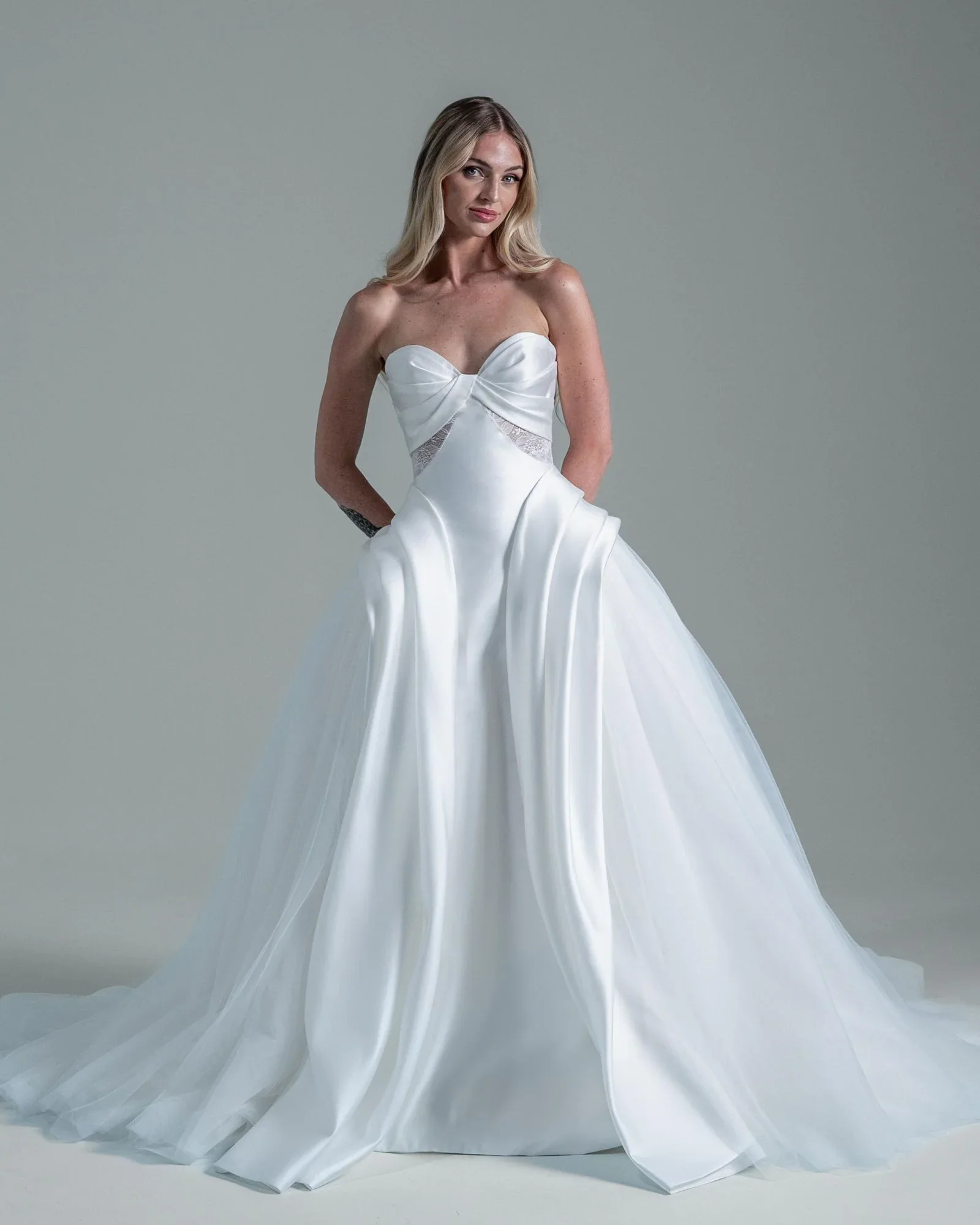 Perfect for brides who want timeless style without compromise, Lis Simon wedding gowns offer elegant simplicity and versatile designs.