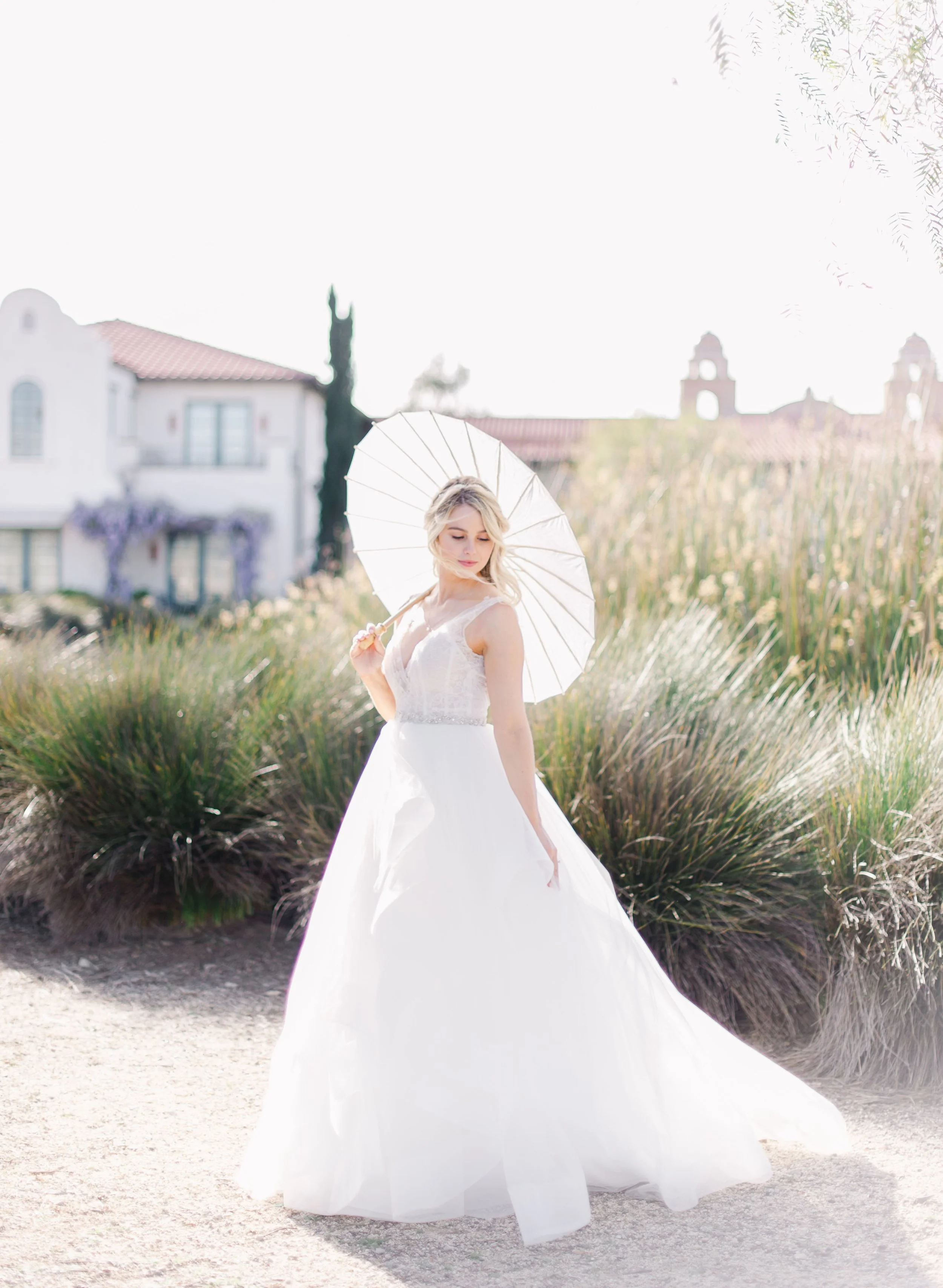 Playful but polished — She loves a fresh, fashion-forward twist on classic bridal.