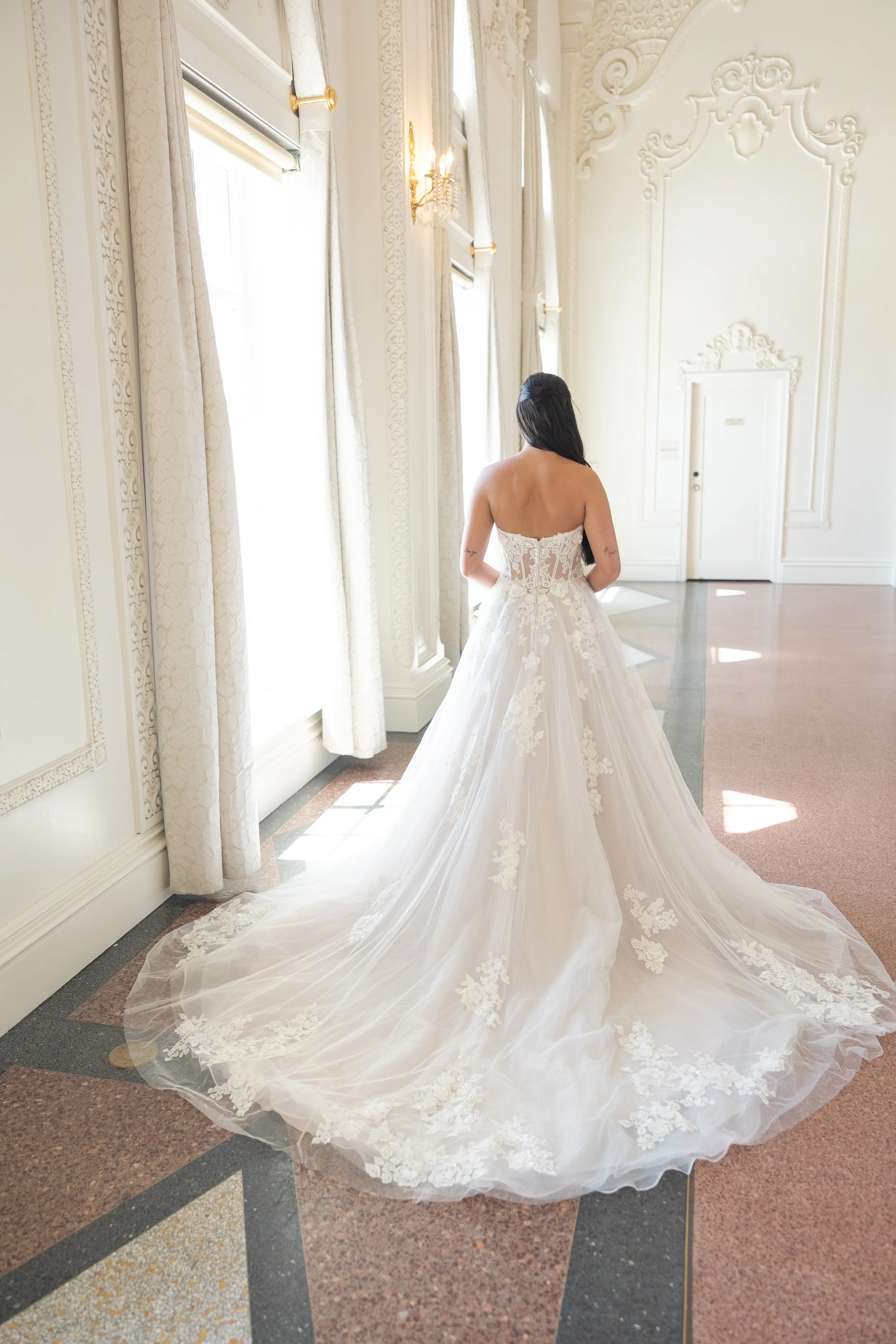 LM Privée is officially available in-store now, and we’re inviting brides to be among the first to experience this stunning line. When you book an appointment at La Mariée, you’ll have the opportunity to try on these gowns during a one-on-one, personalized appointment with one of our expert stylists.