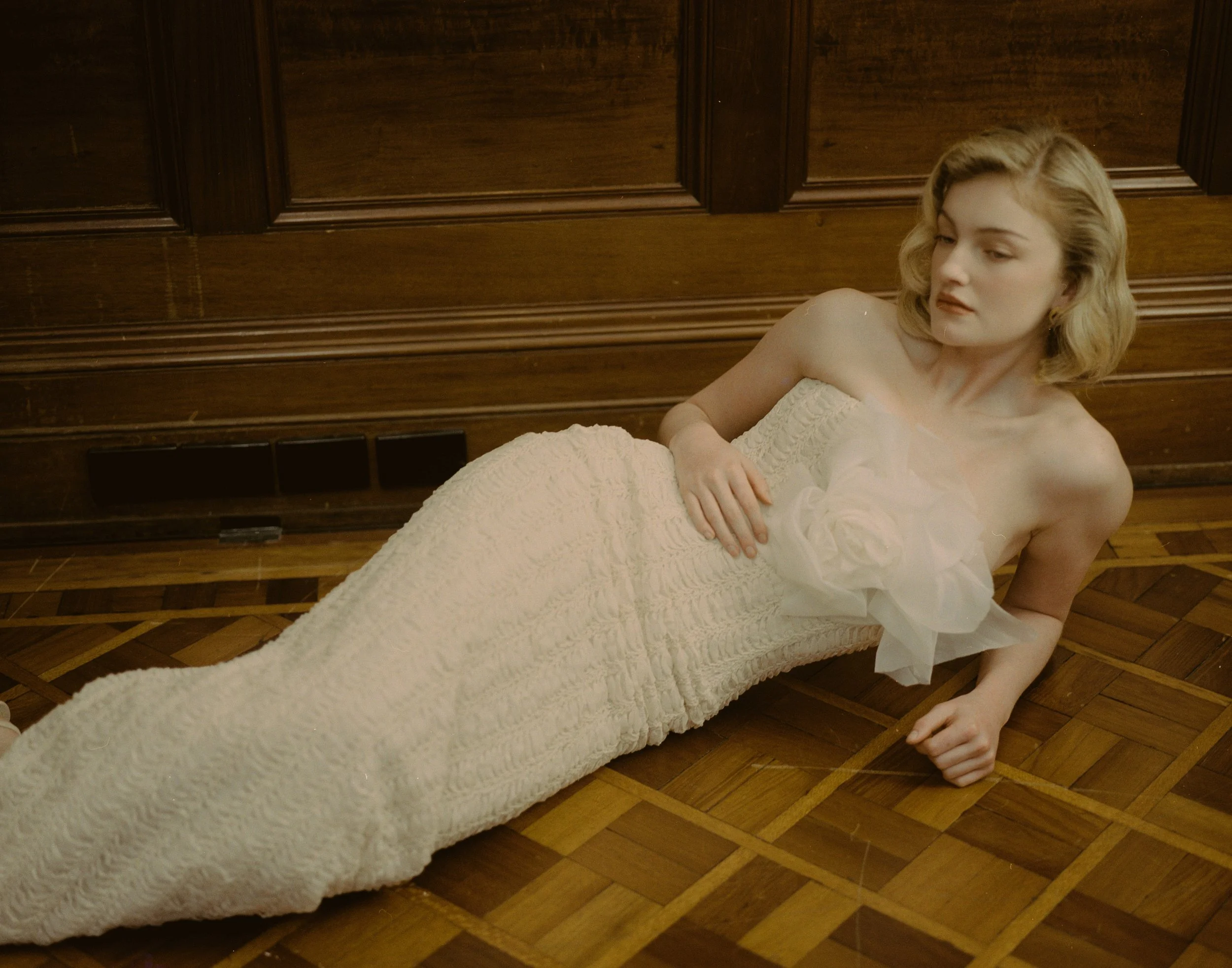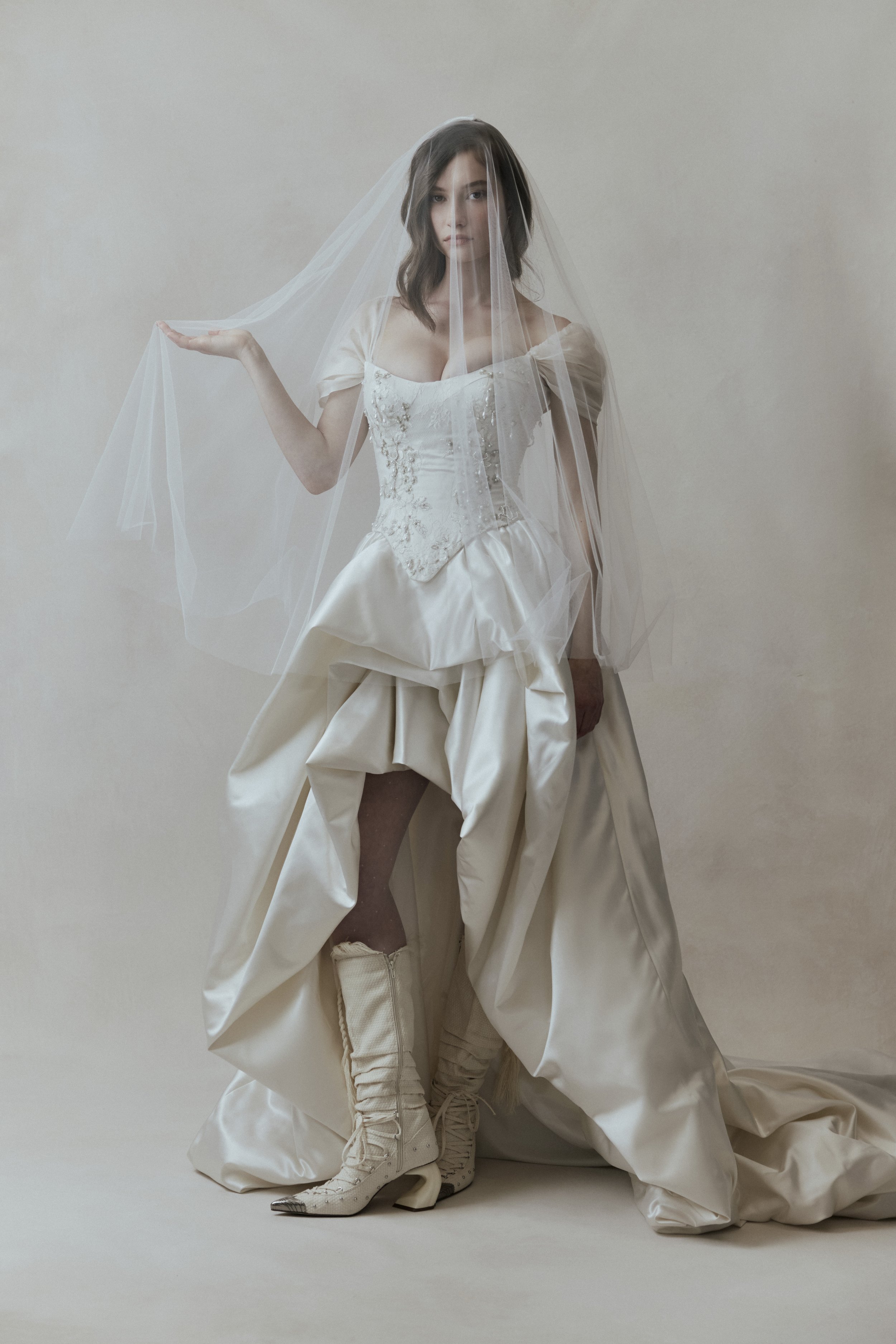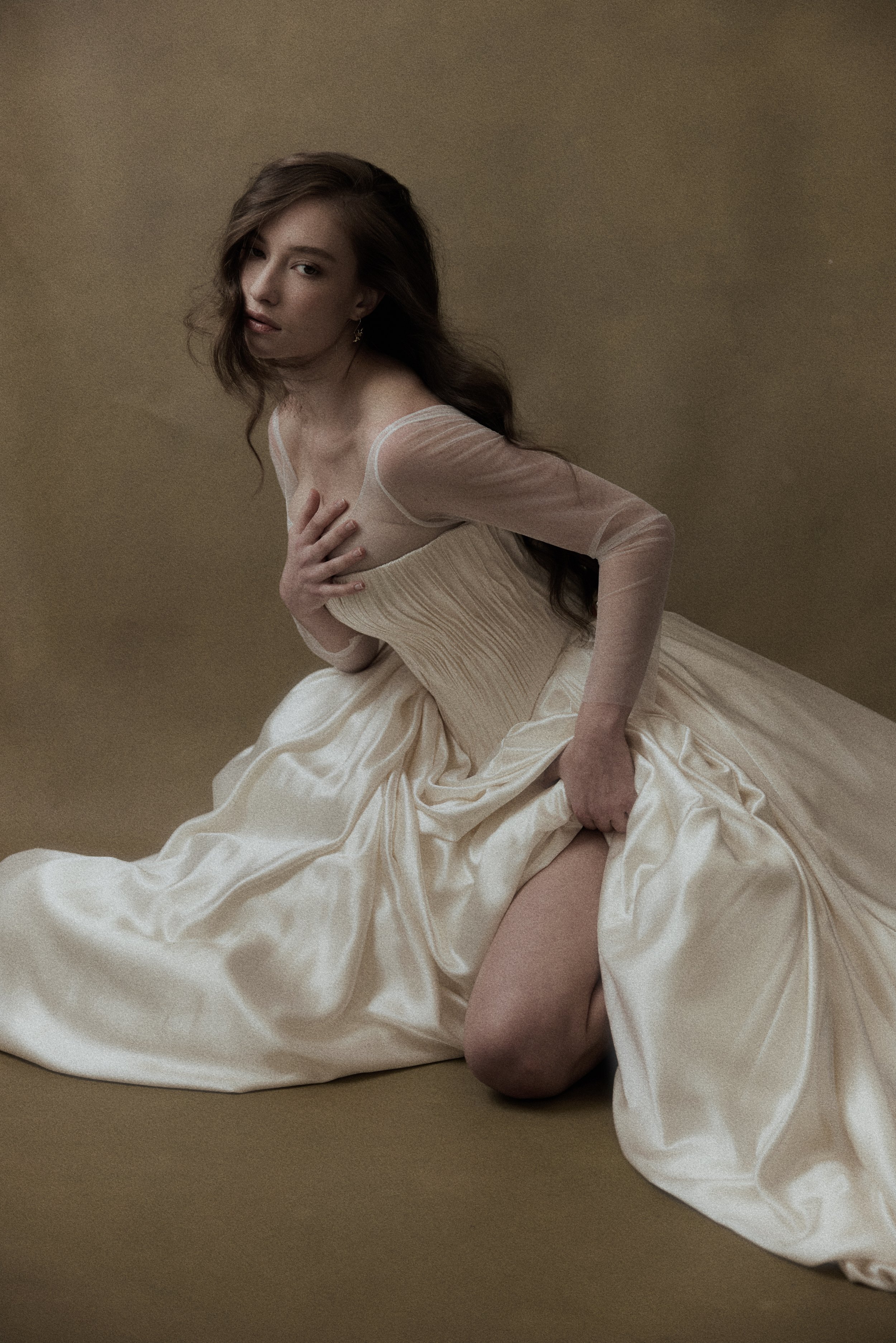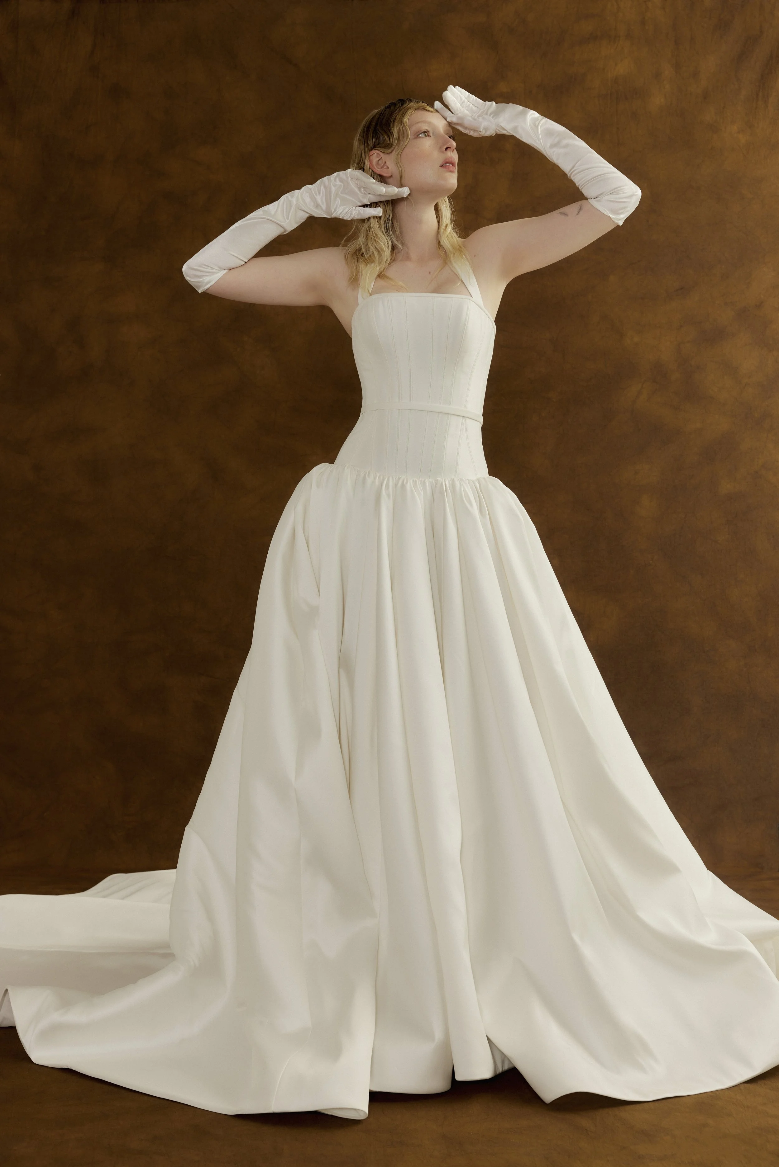 She values beauty that feels personal rather than performative, timeless rather than trend-driven. She is drawn to lightness, softness, and the poetry of subtle detail - the way a sleeve falls, the way fabric moves, the way a gown feels in motion.